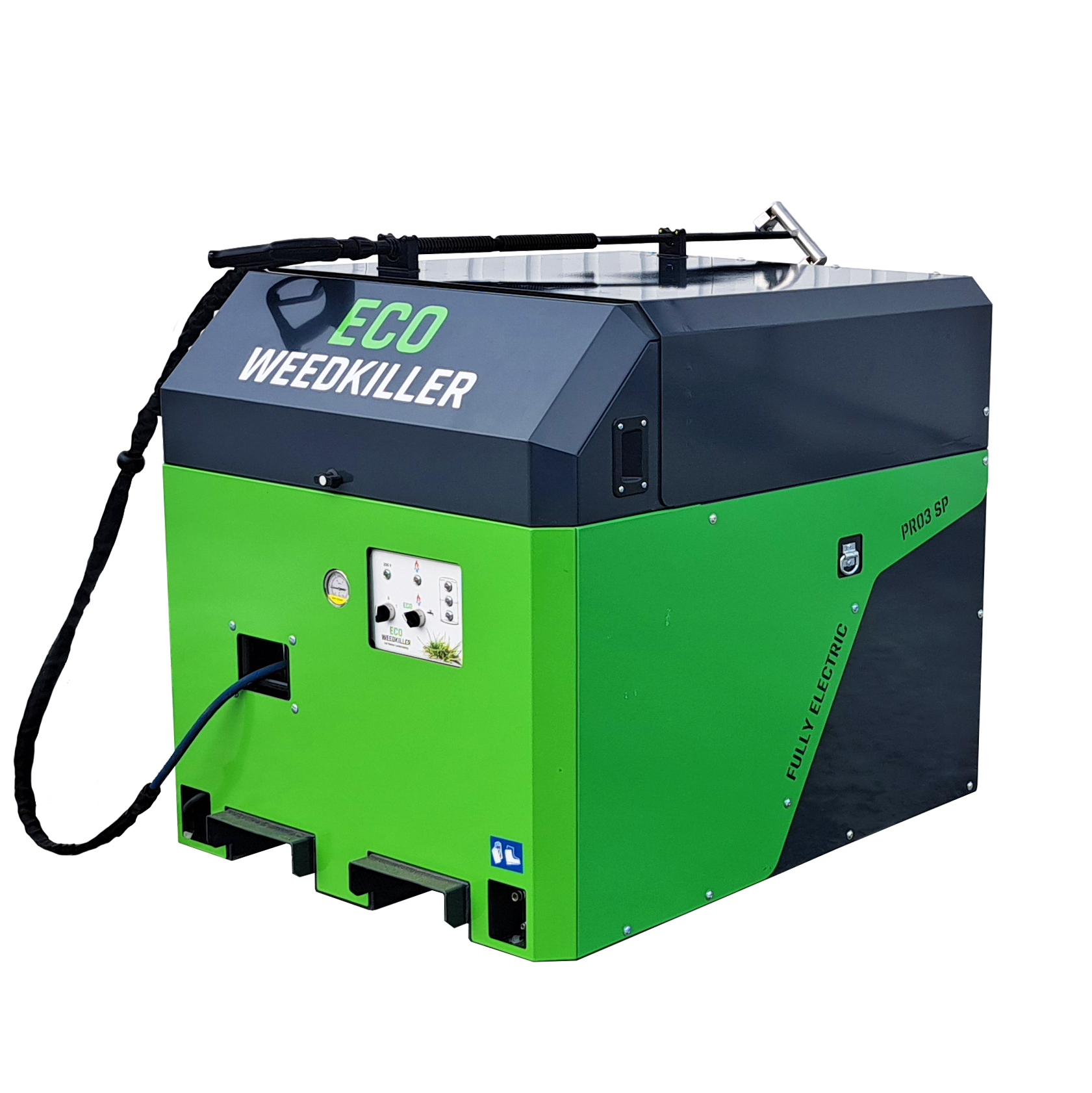 Silent, fully electric hot water device for professional weed control. The Pro SP is a fantastic addition to comprehensive garden maintenance. It can be used, for example, in residential gardens, special park sites, and traffic divider areas. Thanks to its compact size and light weight, the unit is easy to move even with an ATV or a ride-on mower.